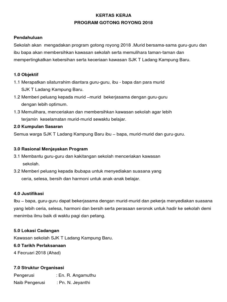 Contoh Kertas Kerja Gotong Royong Di Sekolah Zachary Oferrell